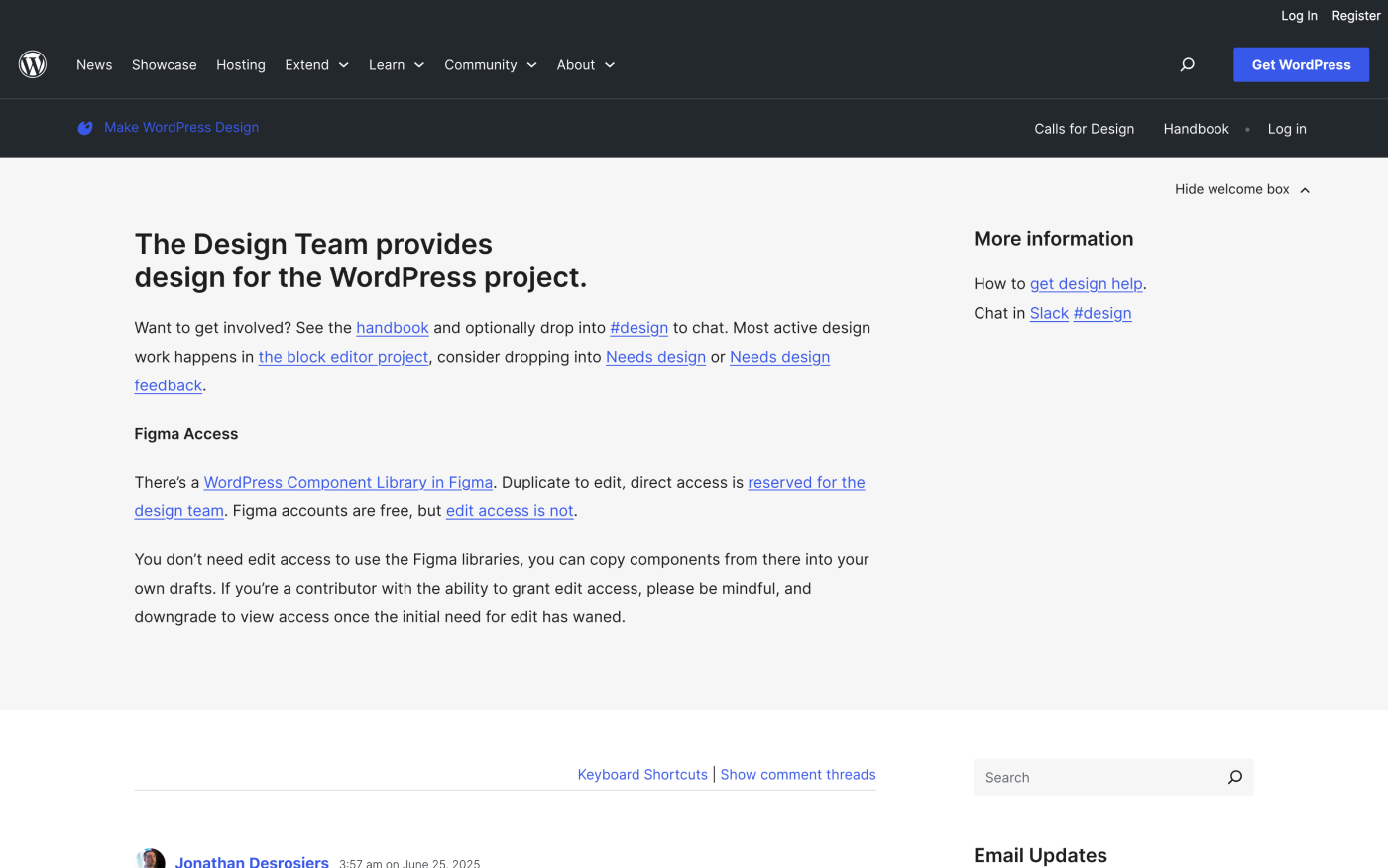 - WordPress. Es el CMS que impulsa más del 40% de internet, y tiene un equipo de diseño dedicado. Puedes contribuir al editor Gutenberg a través de su librería de componentes en Figma, proponer mejoras de interfaz o participar en la documentación visual. Todo está explicado en su Design Handbook.
