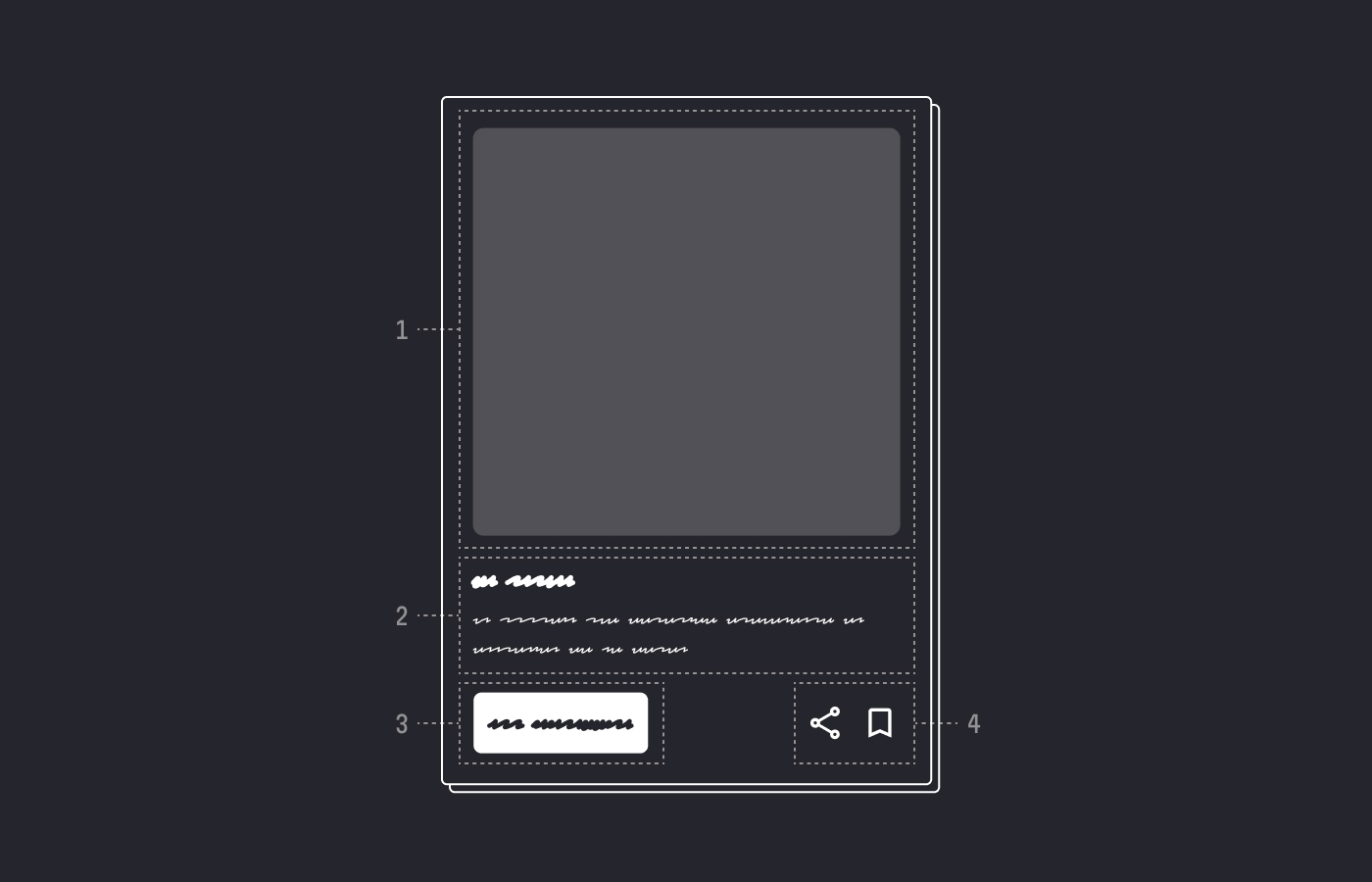 - Imagen o multimedia. Suele ocupar la parte superior o izquierda de la card.